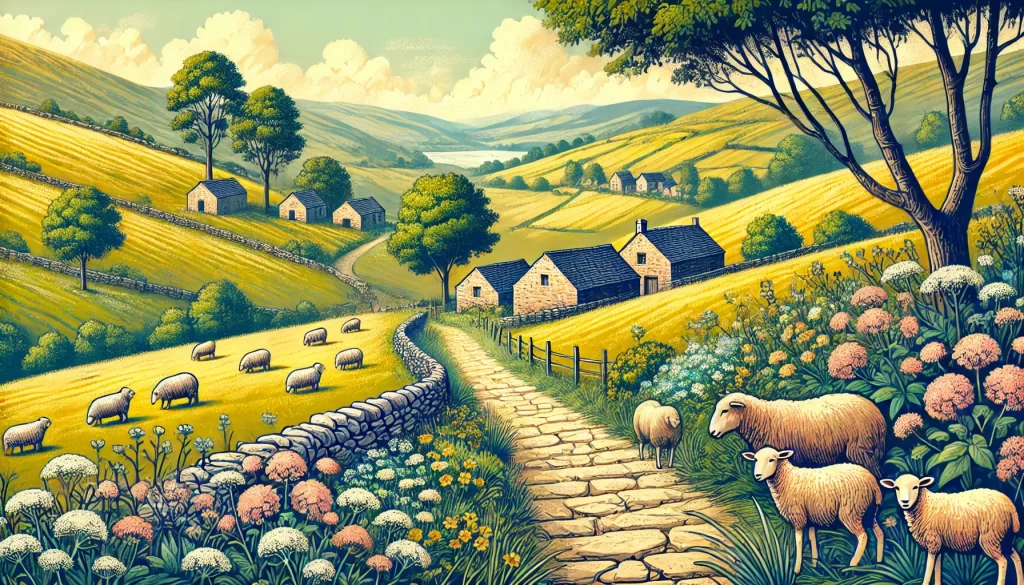 La RUTA DE LA “CORRALADILLA” es una caminata que te lleva a través de paisajes tranquilos con colinas suaves y un encantador pueblo a lo lejos. El sendero está bordeado de flores silvestres en plena floración, y se pueden ver cabañas de piedra y ovejas pastando, lo que resalta el encanto rural de la ruta.